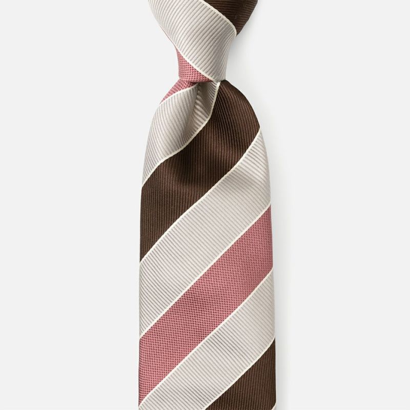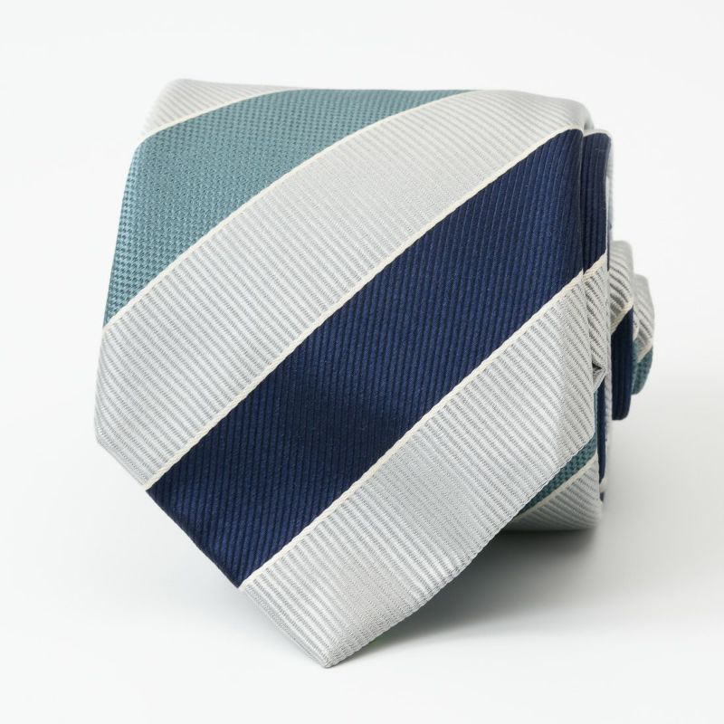 組織の異なるストライプがトレンド感のある配色で表現された味わい深い一本。