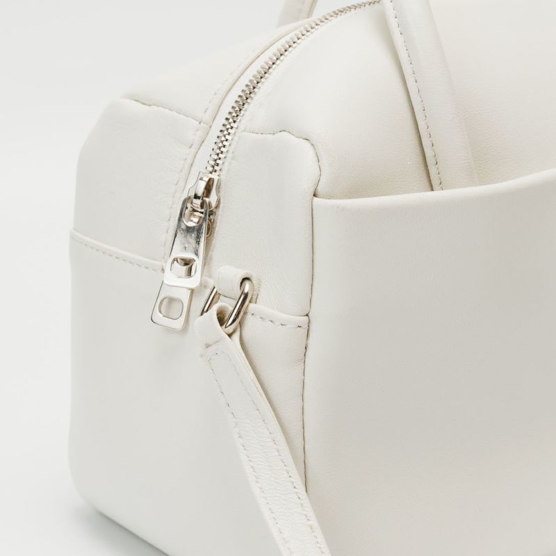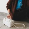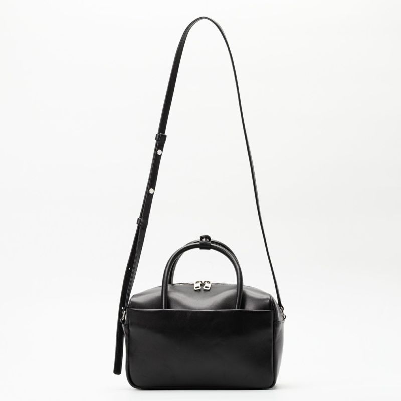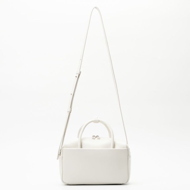キメの細やかな肌目が上品な羊革のショルダー付きミニボストン。 外装に2か所のポケットがあり、機能的にも使いやすいバッグです。 サラッとした印象のメタルの引手や金具もミニマムに拘りました。