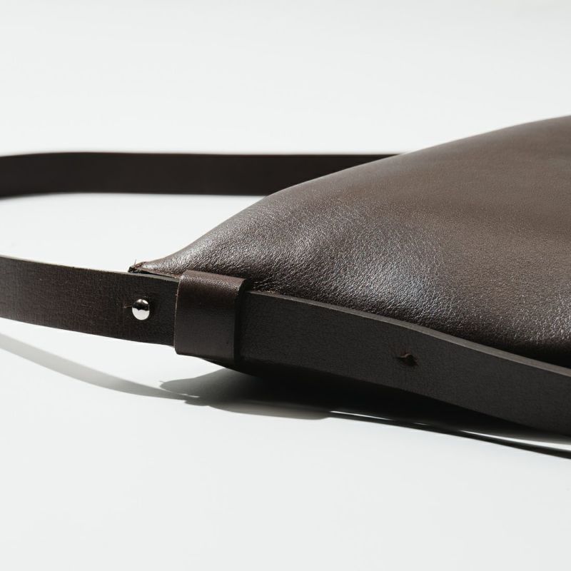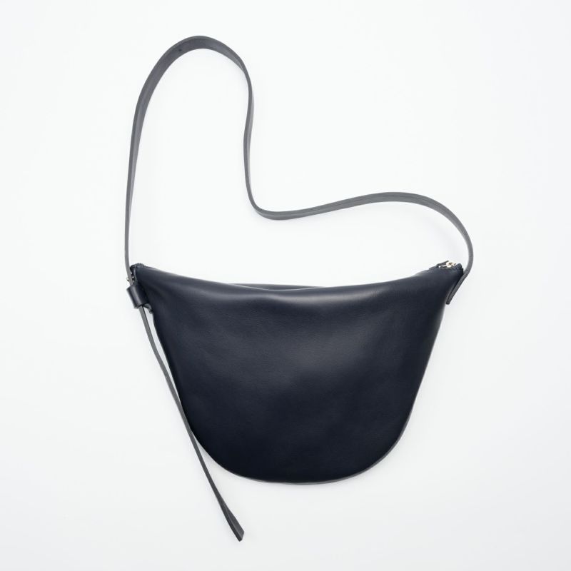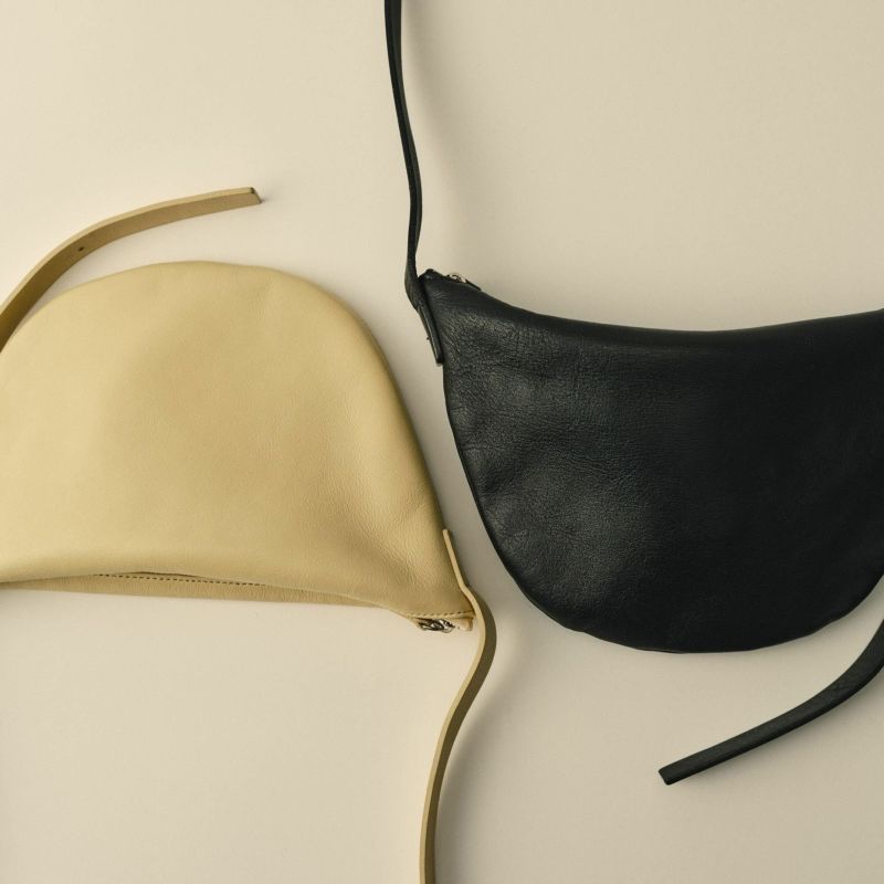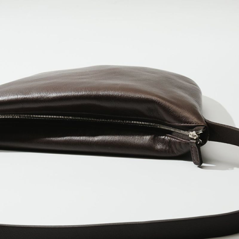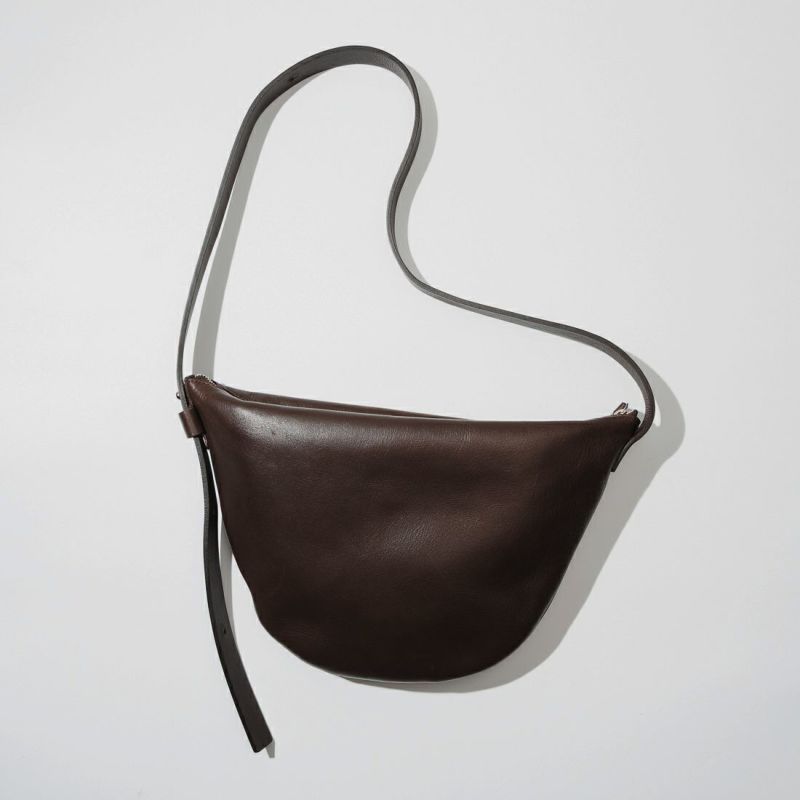 金具やステッチワークを極力見せず、ミニマムな印象に拘った『カジュアル過ぎないレザーのボディバッグ』。