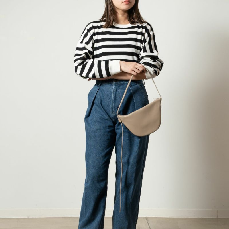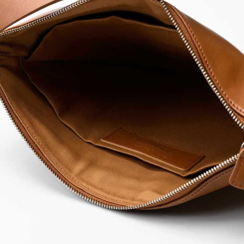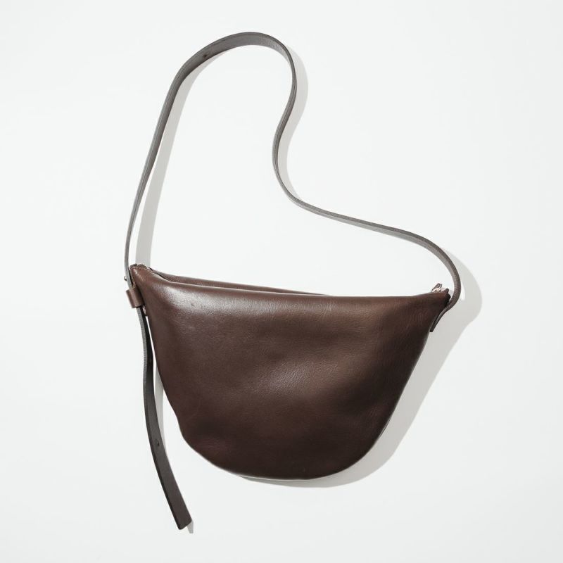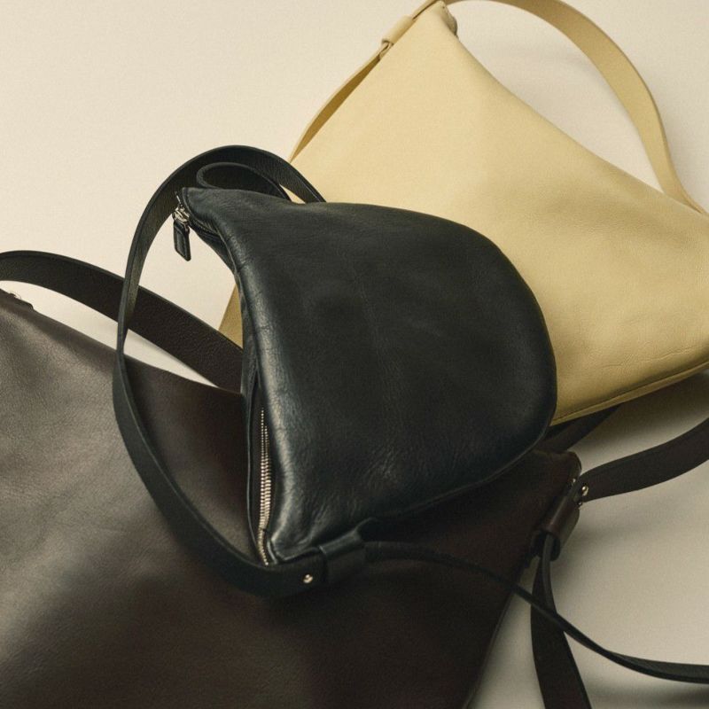 金具やステッチワークを極力見せず、ミニマムな印象に拘った『カジュアル過ぎないレザーのボディバッグ』。