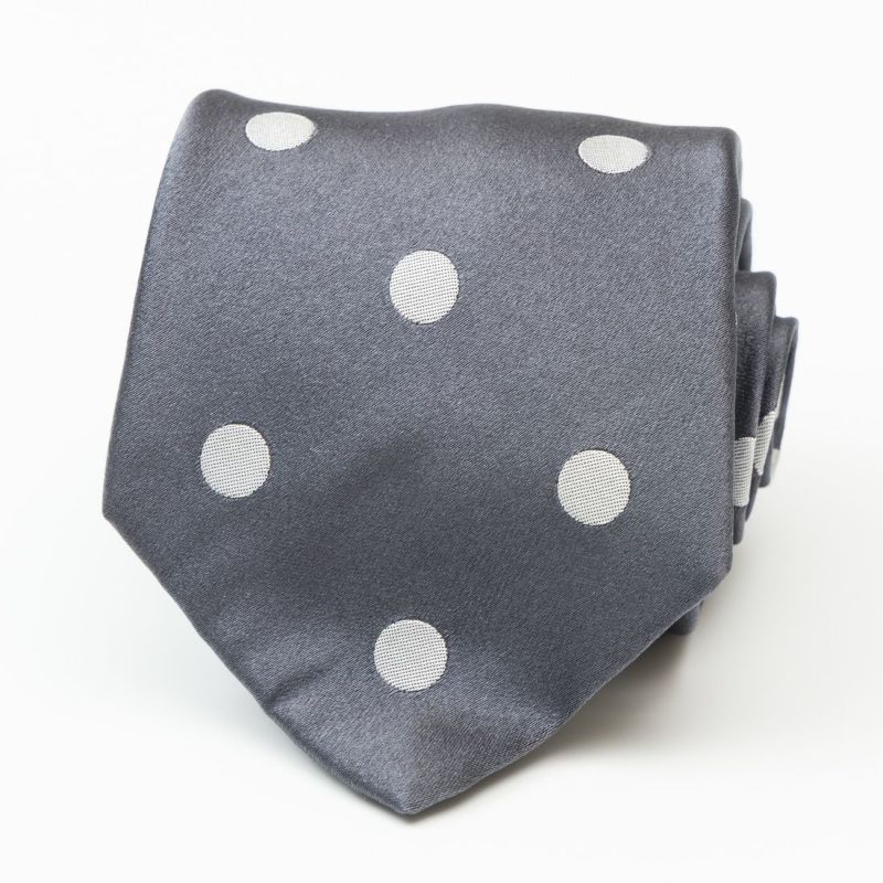 気品あるカラーと規則性のある大き目で広めのスペースで配したドット柄が、遊び心もありながら落ち着いた印象も与えられる万能な1本です。