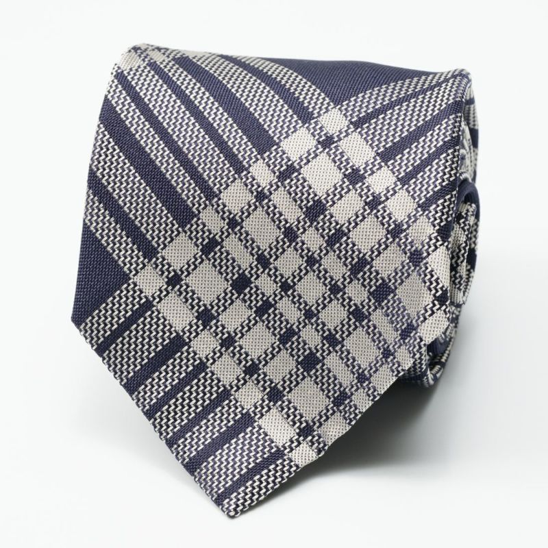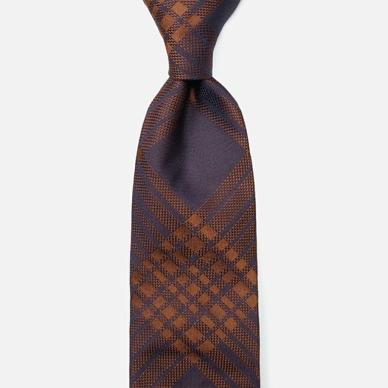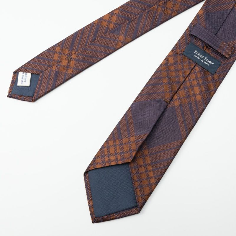 2色の糸を使い平織りで織られた生地をベースに、ドビー織りにより表現されたチェック柄が映えるこちらの生地は、イタリアはFERMO FOSSATI社のもの。組織の組み合わせ、また、チェックの色使い等どこをとっても名門テキスタイルメーカーの技術が詰まったネクタイに仕上がっております。
