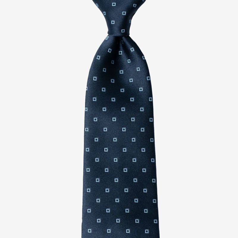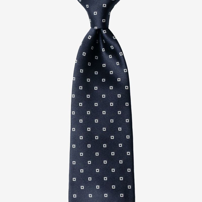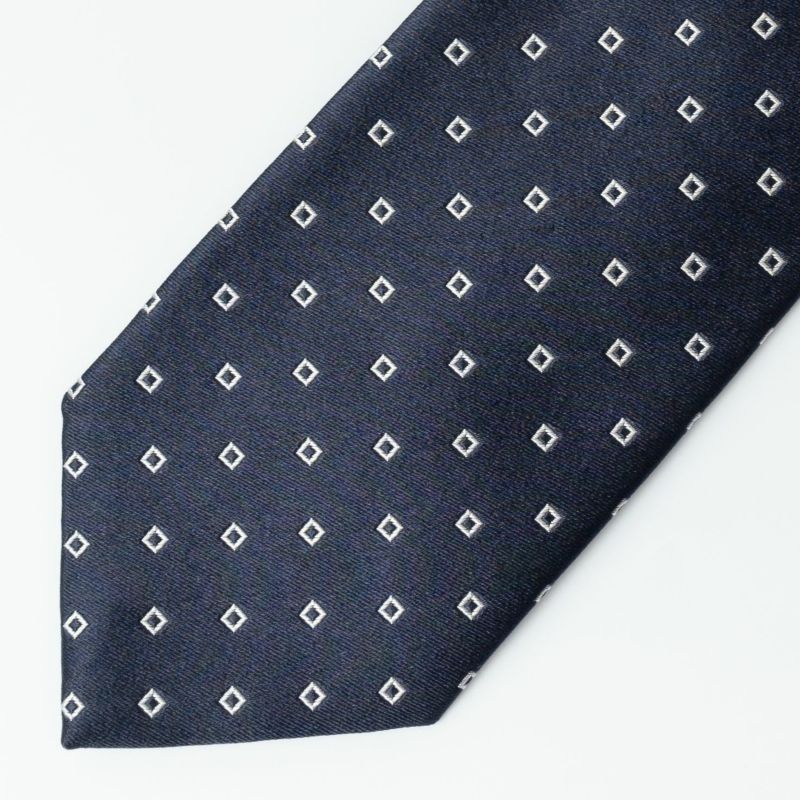 ドットのような小ぶりのモチーフをバランス良く配し、ビジネスシーンはもちろん、きちんとした席用としても使い勝手の良いネクタイです。
