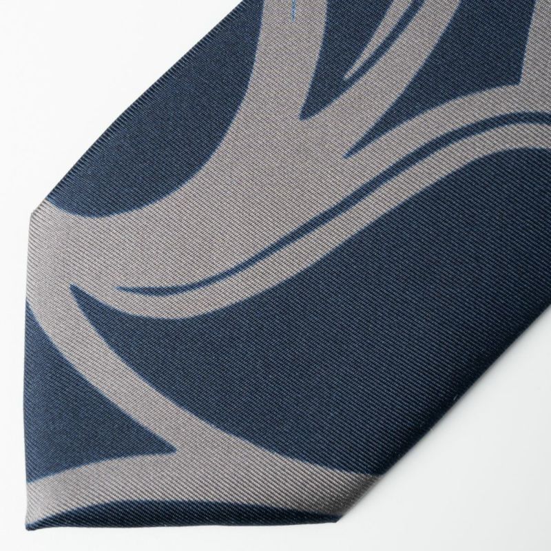 大胆でありながら繊細な曲線使いのデザインは、フランコバッシのアーカイブの中からマエストロが最も魅了されたものをピックアップし、自ら配色を行い、「マエストロ別注」として企画、実現したスペシャルな一本です。この弧を描くような曲線はジャカードではキレイに表現することが難しく、プリントならではの醍醐味が詰まっています。