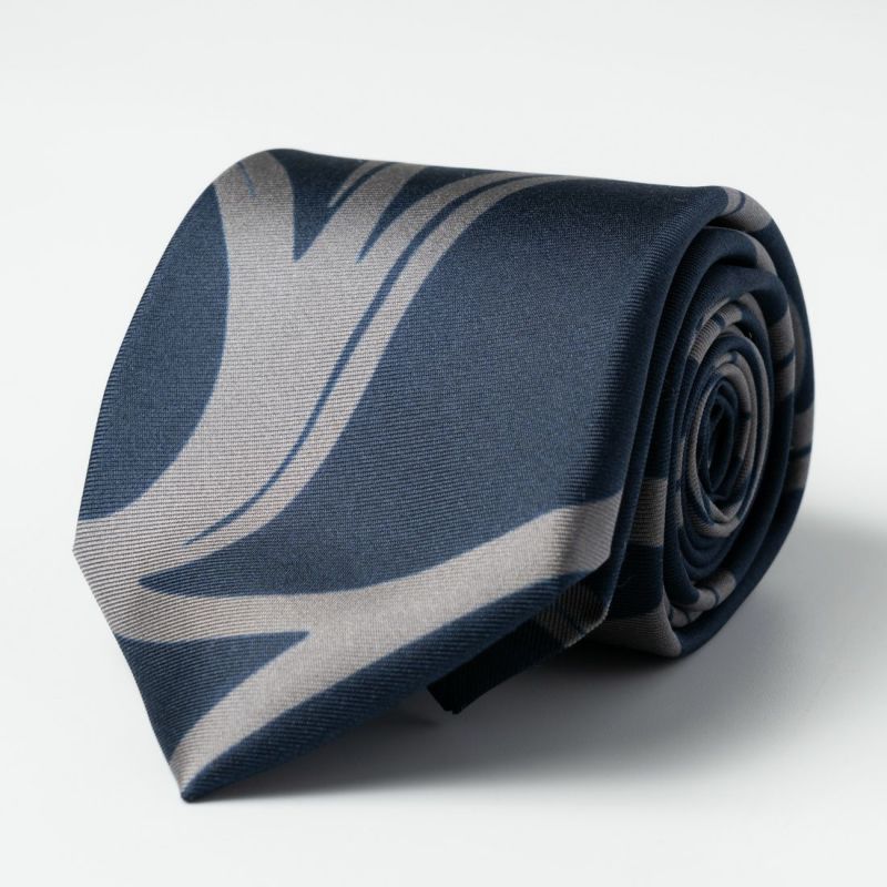 敢えてやや浅い色味で表現されたネイビーカラー。 そこにグレーを掛け合わせることで、濃淡を出しすぎず、男性らしいカラーリングに仕上げました。 並木「濃紺ではなくこれくらい浅いネイビーが今の気分です。ネイビーやグレーのスーツに、白やサックスの無地シャツでシンプルにコーディネートを楽しんでいただきたいネクタイです。」