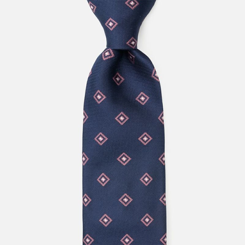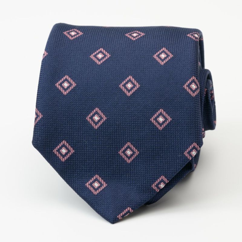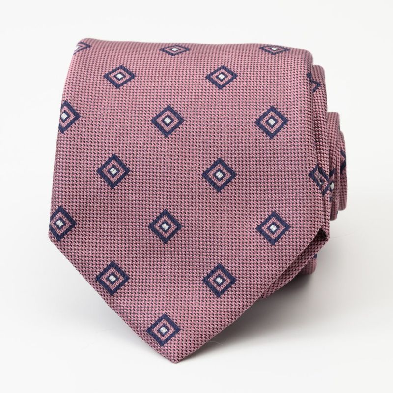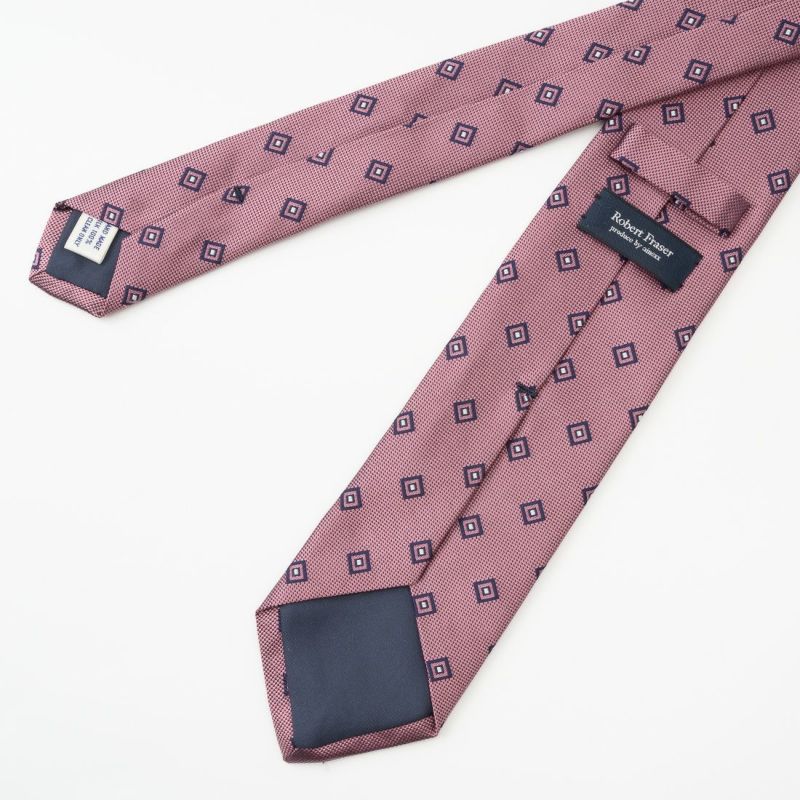 トレンド感のあるピンク系のカラーで規則的に配された小紋がポイントとなる一本。普遍的でありながら今の雰囲気も出せる小紋タイは長く愛用いただけるネクタイです。