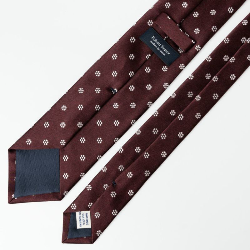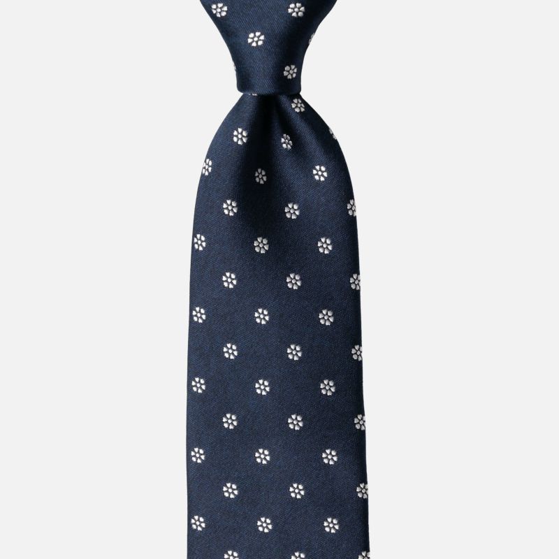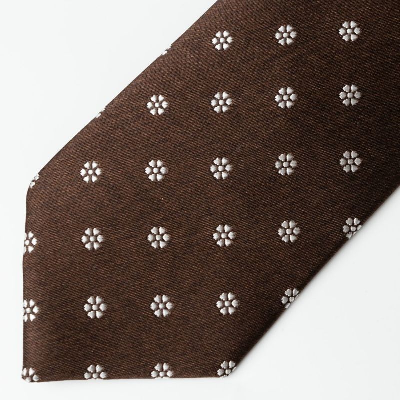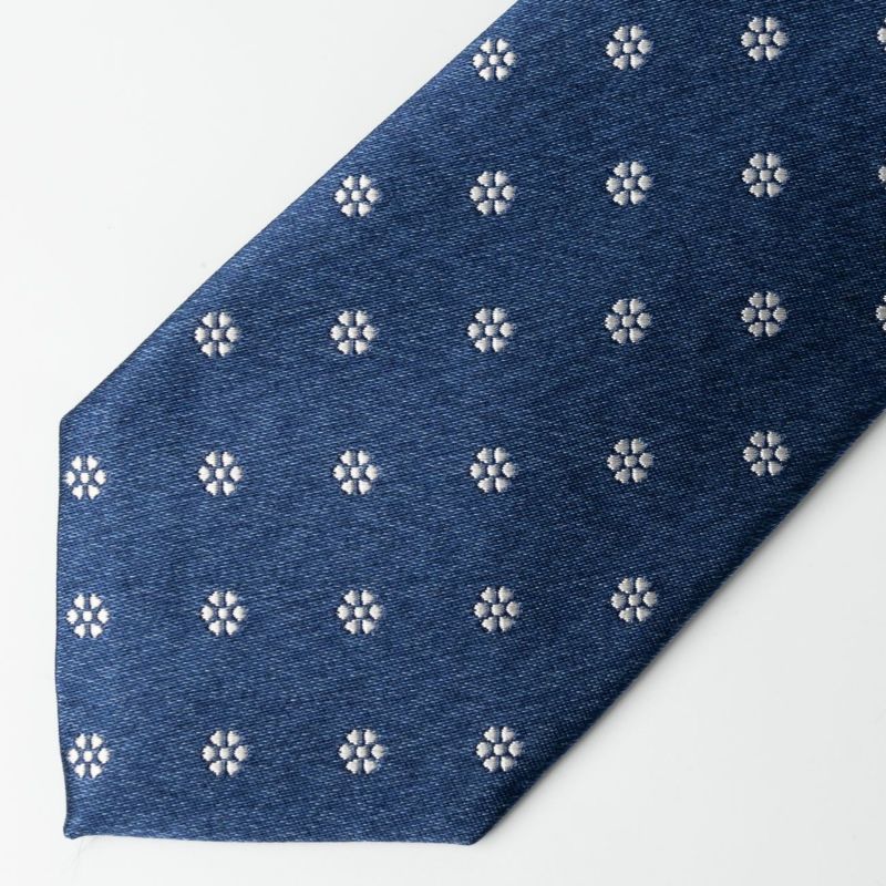 メランジの生地をベースに、シンプルな小花柄が定番として活躍するネクタイ。トレンドに白湯されることなく、長くお使いいただける一本です。