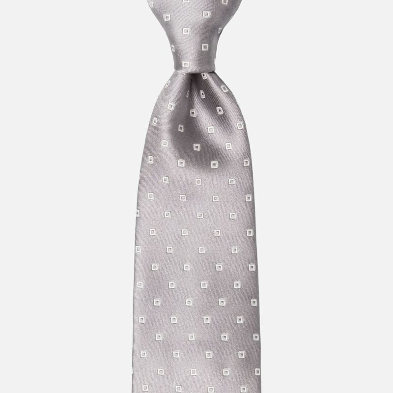 ドットのような小ぶりのモチーフをバランス良く配し、ビジネスシーンはもちろん、きちんとした席用としても使い勝手の良いネクタイです。