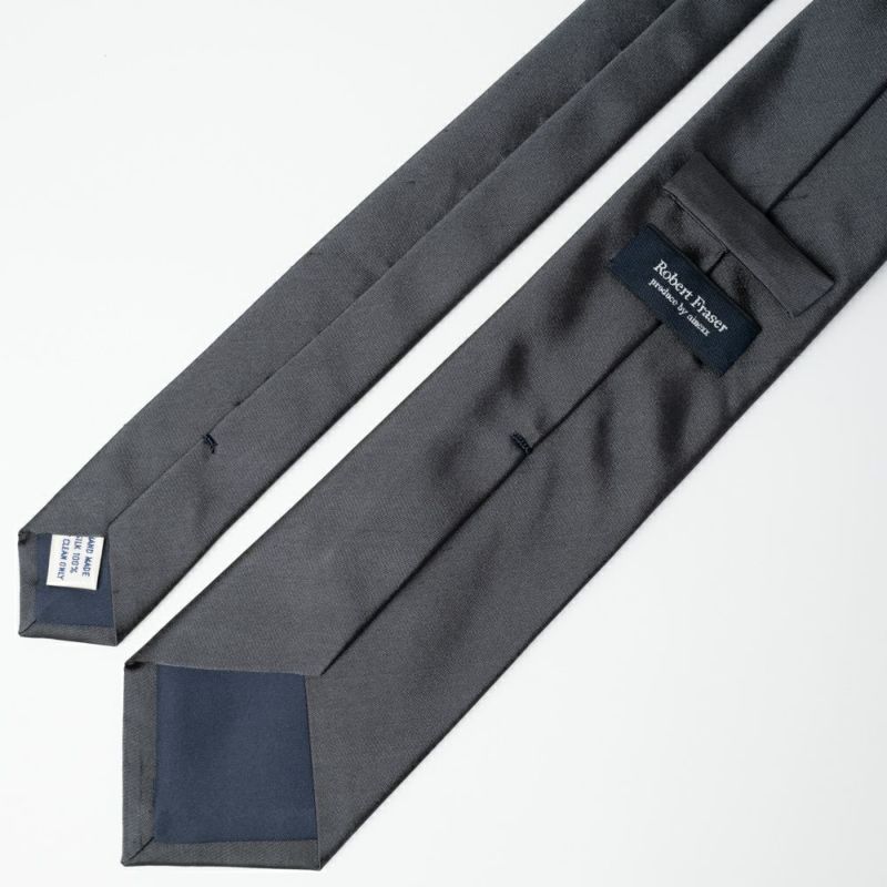 <ROBERT FRASER(ロバート フレイザー)>より、イタリアのCLASSICO SETA社の生地を使用した無地シャンタンタイの登場です。YouTube【ネクタイマエストロチャンネル】の並木孝之が動画にて着用している一本。(GREY)