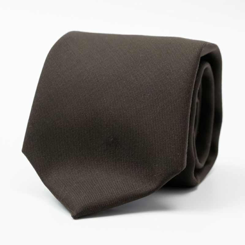 深みのあるダークブラウンのタテ綾織生地は、イタリア・ビエラ地方で創業100年以上の歴史を誇る最高級服地メーカー「TALLIA DI DELFINO社」の生地を使用した上質なウール生地です。本来スーツ等に使用される生地のためしなやかかつ、手触りの良い手持ち感があり、シルクの風合いとも一味違ったVゾーンを演出してくれること間違いありません。