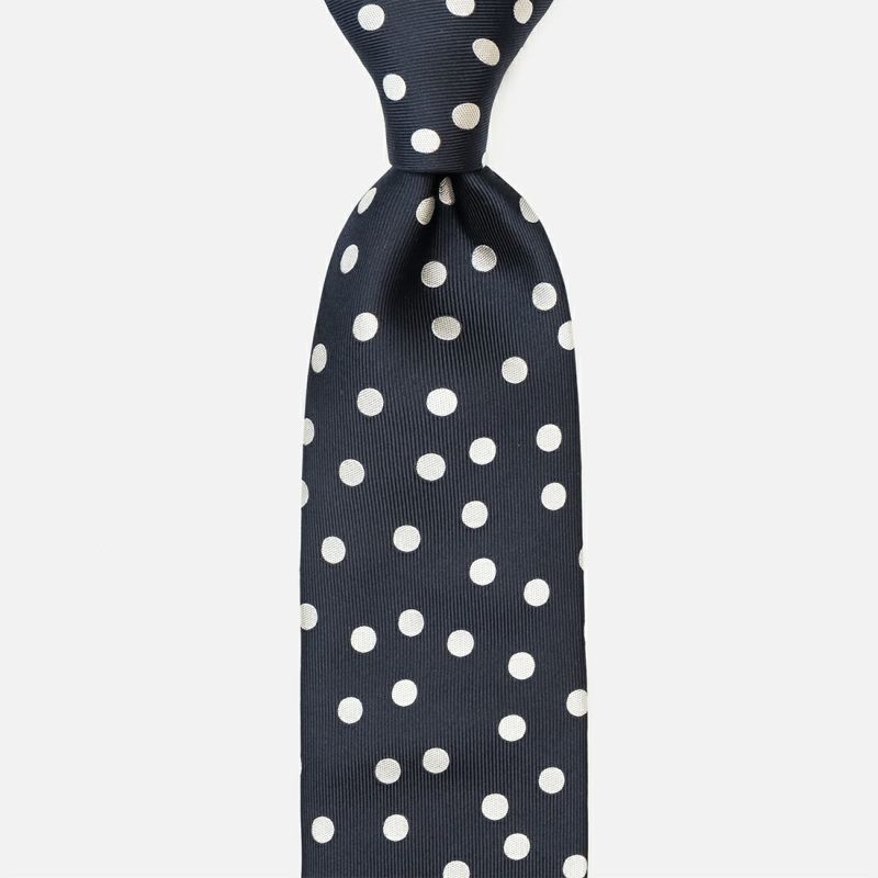 ランダムに配したドット柄が、遊びもありながらきちんとした印象を与えられる万能な1本です。