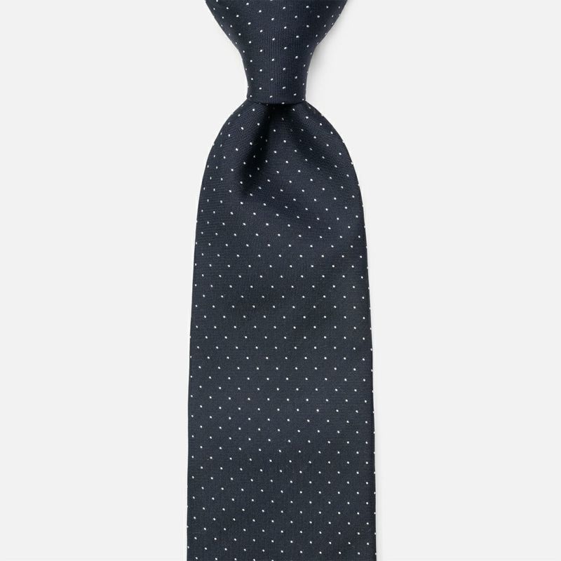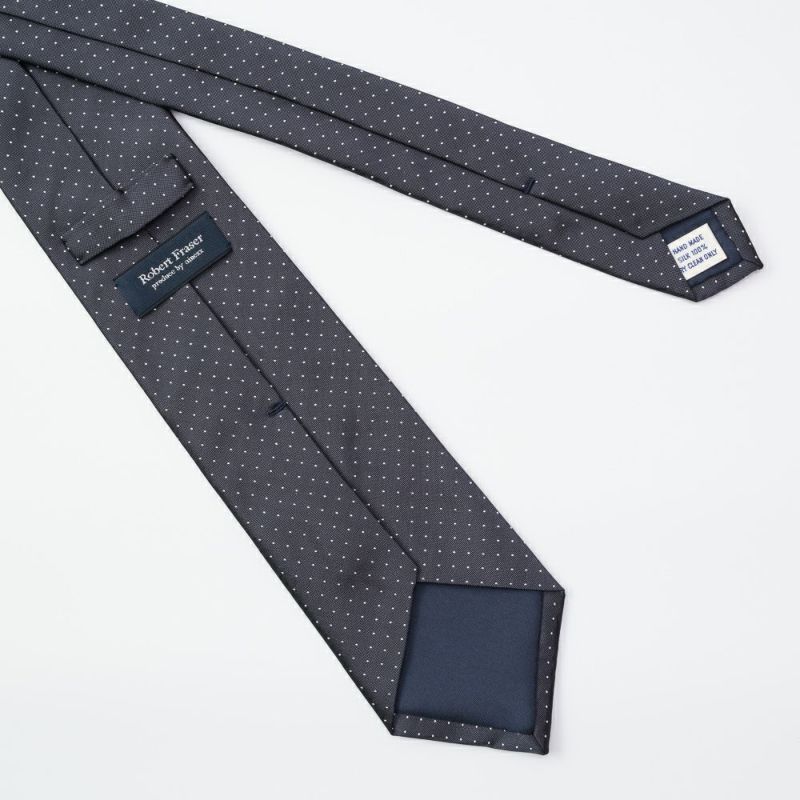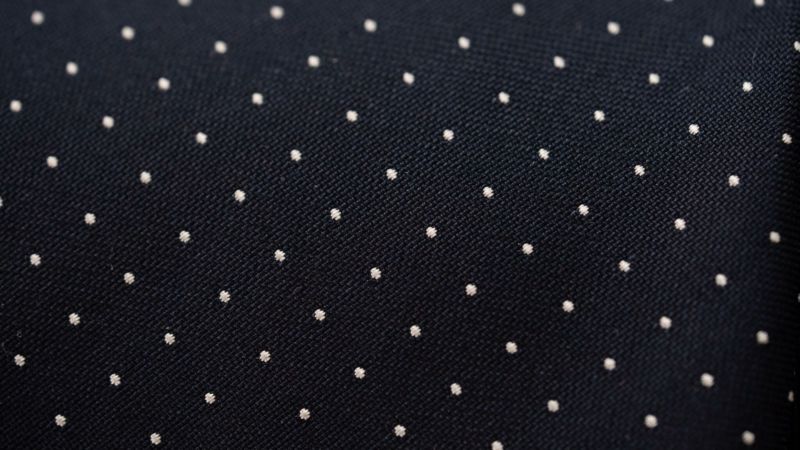 様々なサイズのドットのネクタイが存在する中で、今回はピンドット=点のようなドットをチョイス。