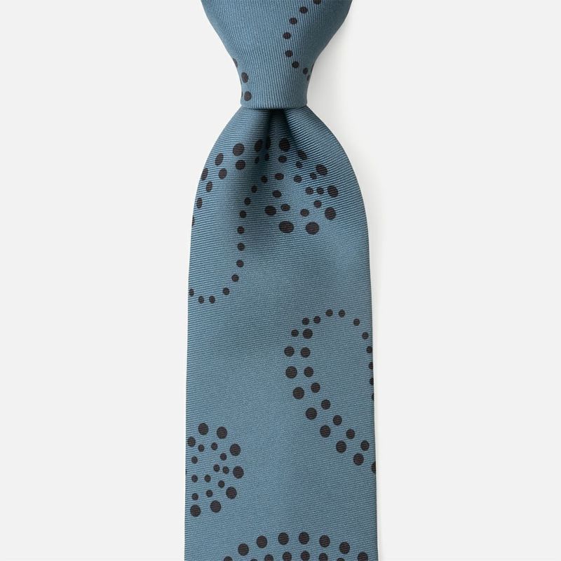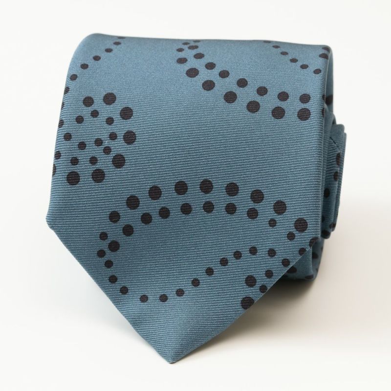 ペイズリーをかたどった大小のドット柄が目を引く一本。シンプルながら、トレンド感のあるACQUAカラーがモダンな印象を与えます。