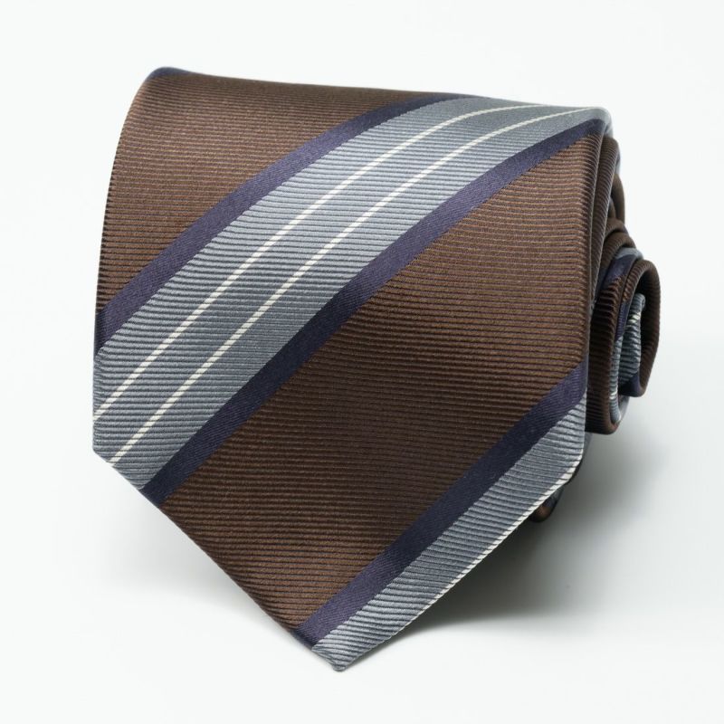 定番ともいえるストライプ柄に今シーズンらしい絶妙なカラーを配したストライプは、上品で高級感が漂う一本。ネイビースーツはもちろん、ブラウンやグレーのスーツとも相性がよい万能デザインです。