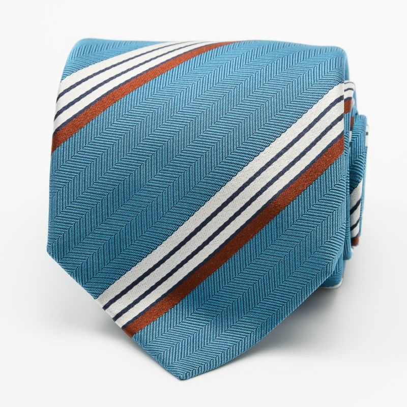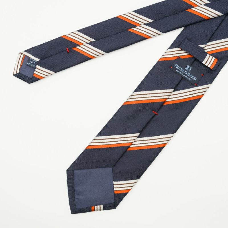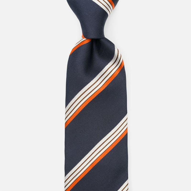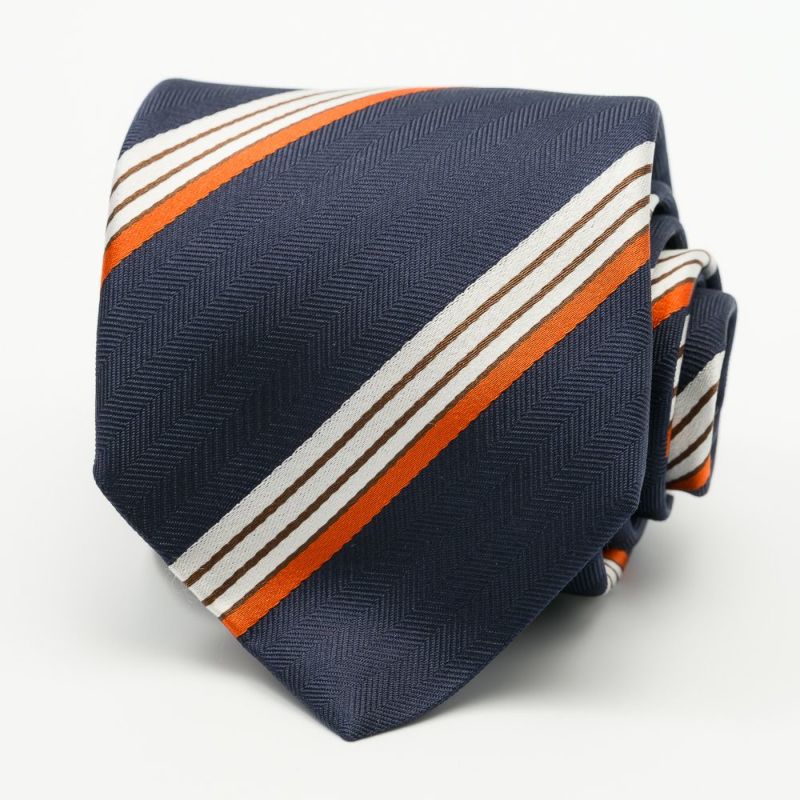 ヘリンボーン生地をベースに、華やさのある挿し色のストライプがポイントとなり、ネイビージャケットスタイルはもちろん、様々なコーディネートが楽しめます。 ハンドメイドによる丁寧な造りと上質なシルク100%を使用しているので締め心地も抜群です。