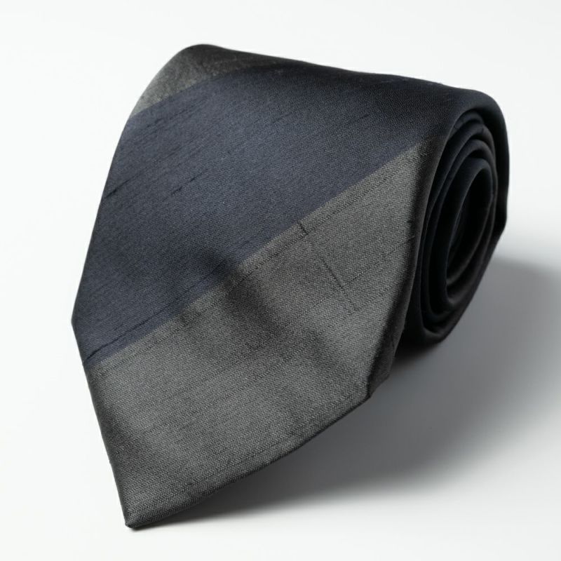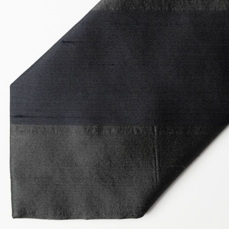 シャンタン生地はヨコ糸に節のあるシルクを使用することで、あえて不均一でざらっとした表面感を作り出したもの。こちらは極細幅のヘリンボーン組織をベースにしており、シャンタンの節感を含め、素材感の楽しめる一本となっています。