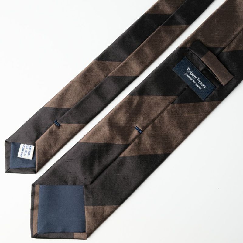 <ROBERT FRASER(ロバート フレイザー)>より、イタリアCLASSICO SETA社の生地を使用したシャンタンストライプタイの登場です。