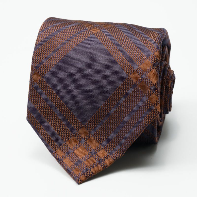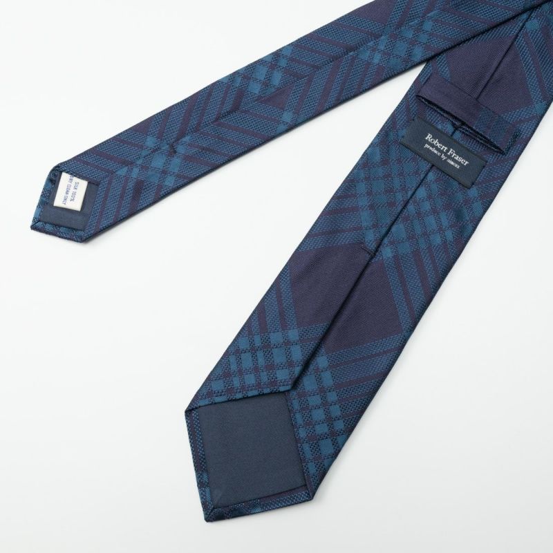 2色の糸を使い平織りで織られた生地をベースに、ドビー織りにより表現されたチェック柄が映えるこちらの生地は、イタリアはFERMO FOSSATI社のもの。組織の組み合わせ、また、チェックの色使い等どこをとっても名門テキスタイルメーカーの技術が詰まったネクタイに仕上がっております。