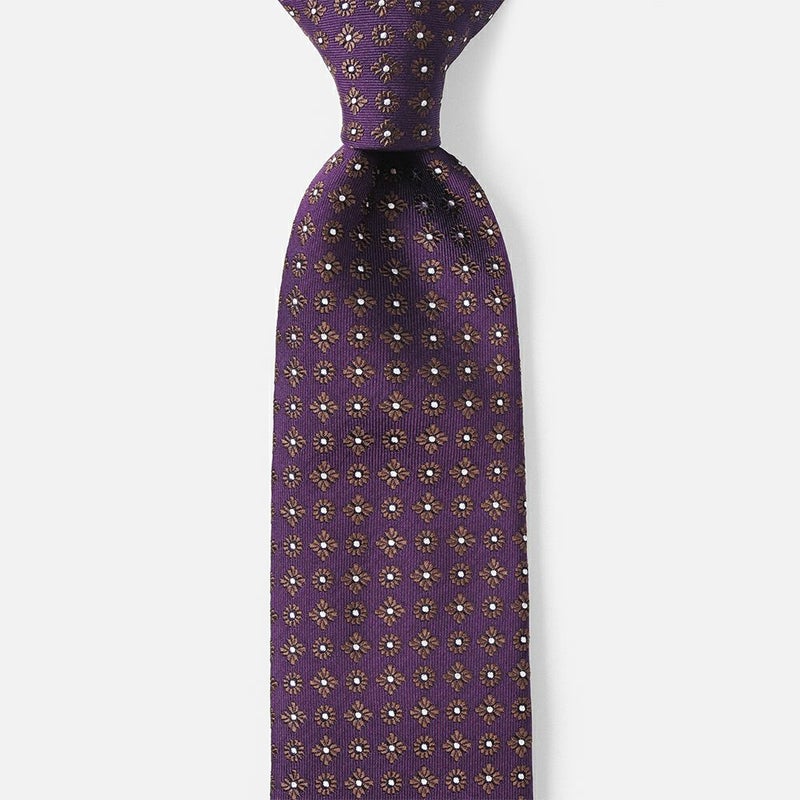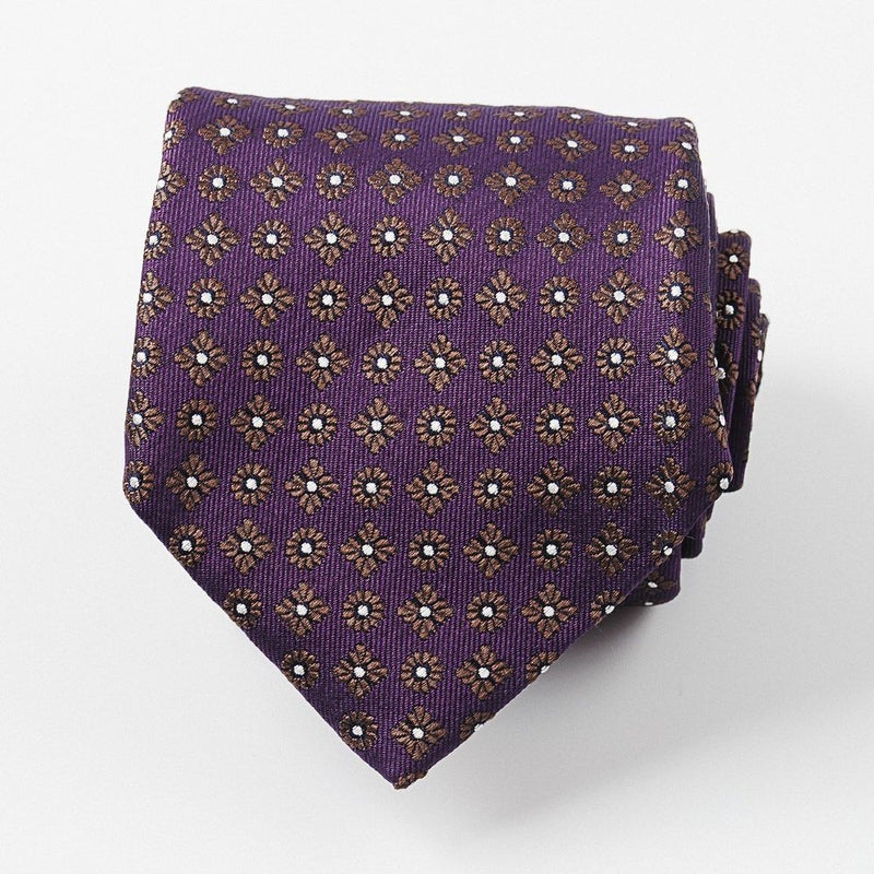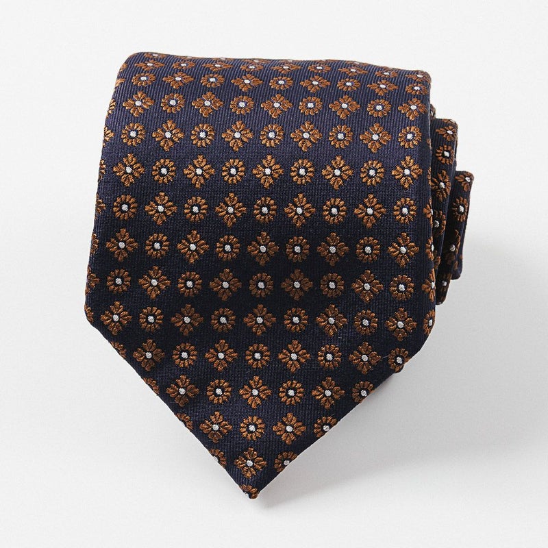 秋冬らしい深みのあるカラーをベースに、クラシックな小紋柄をあしらった一本。 規則的に並んだ美しい2種類のジャカードモチーフが、高級感があり洗練された印象を与えます。