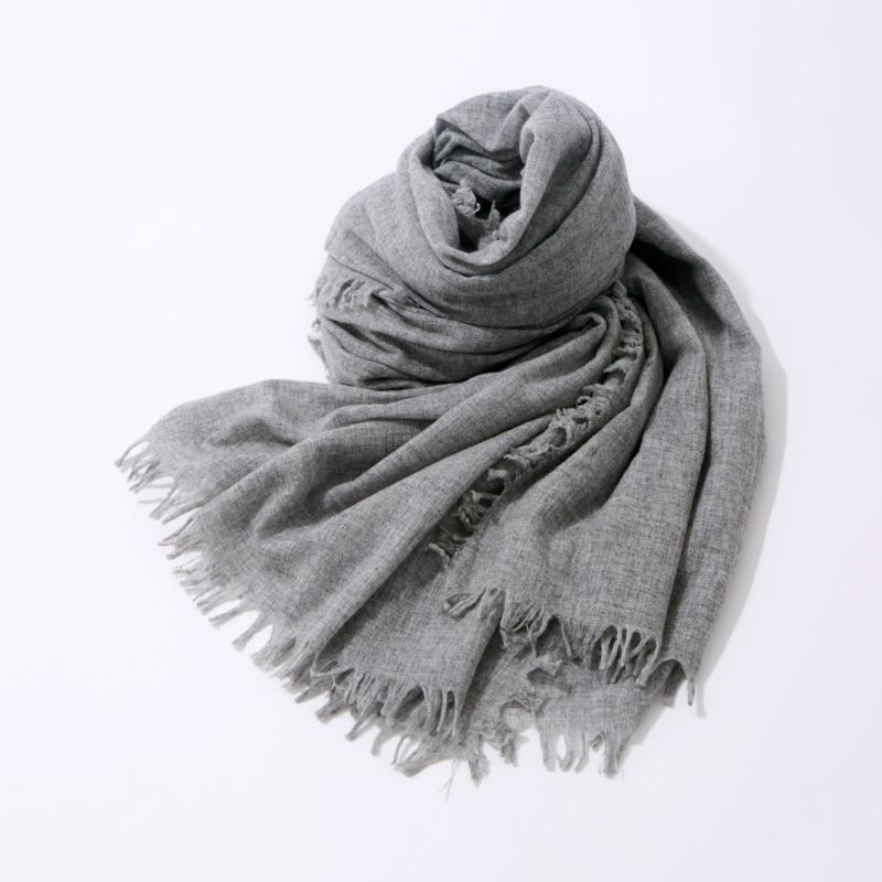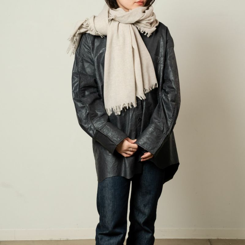 織り上げる段階では、糸の中心に水溶性ビニロンの糸を入れ、最終工程でこの糸を製品洗いで解かします。糸の中心が空洞になり空気を沢山はらんだ柔らかでスポンディッシュな質感が生まれます。薄手ながらボリュームの出る不思議なストールです。25FWの新色としてPostBoxが登場しました。