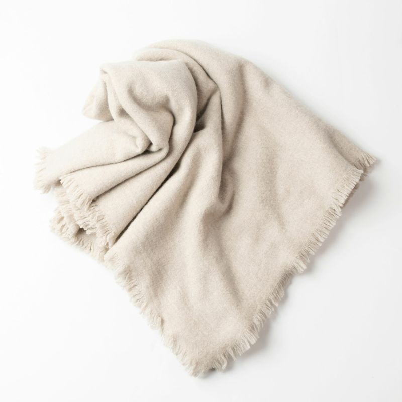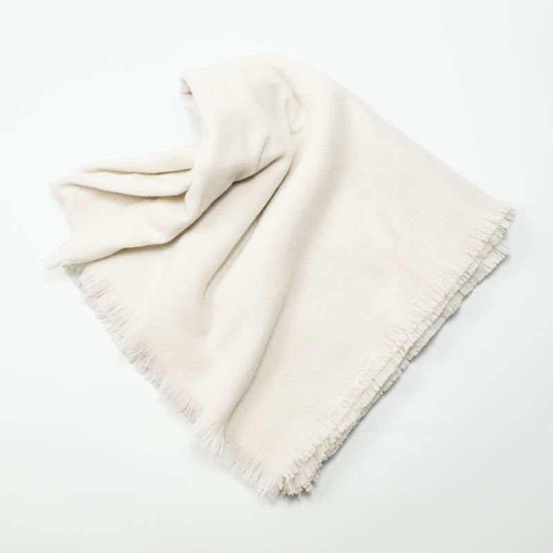 紡毛ながら48番双糸という世界でも類をみない紡績に成功。軽やかでふっくらもっちりとした質感のストールです。