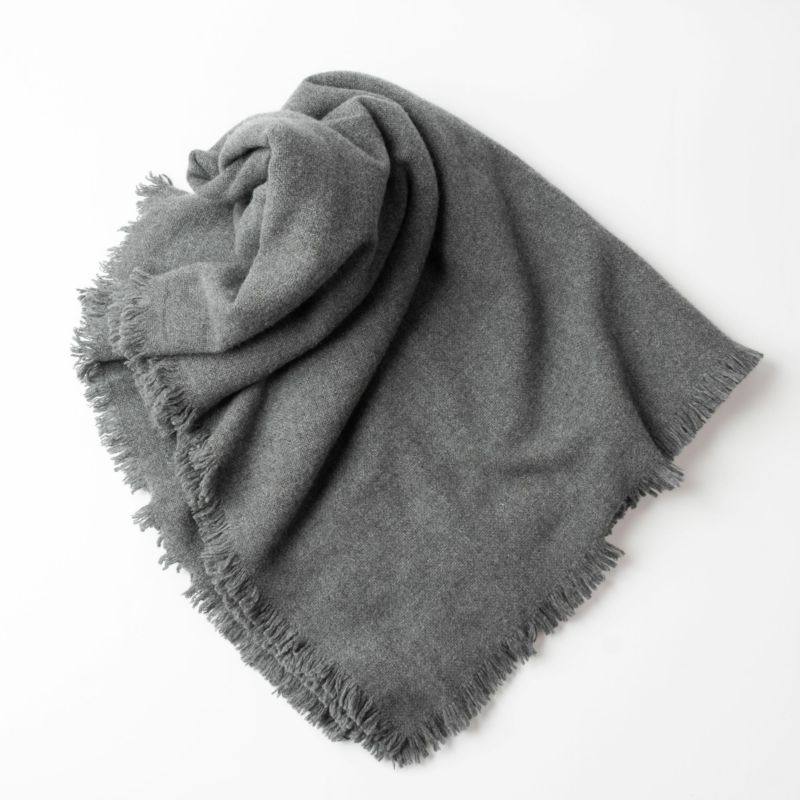 紡毛ながら48番双糸という世界でも類をみない紡績に成功。軽やかでふっくらもっちりとした質感のストールです。