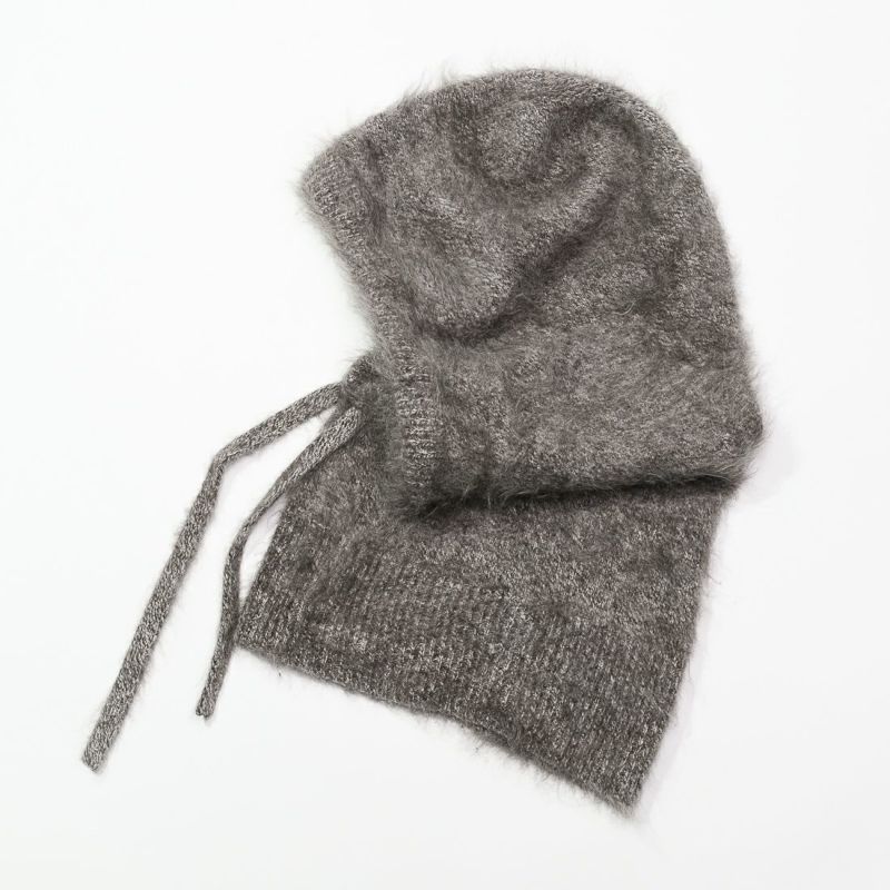 真冬に暖かく耳まで覆ってくれるアイテムを作りたいとの思いで生まれたフードスヌード。特に顔まわりは肌ざわりを敏感にキャッチするため、包まれていて気持ちがいいカシミアファーを採用しました。アソースメレの中でも最大の保温性を誇るこちらの素材。その秘密は毛足が長く空気の壁を作ってくれることにあります。カシミヤファー加工は世界でも唯一、日本の工房でしか生産の出来ない唯一無二の加工技術です。リアルファーのような美しい艶やかな毛足の質感とコート並みの保温性が魅力です。起毛しているわけでは無いため毛抜けがなく、1枚のストールの毛足を出すために数時間を要し、手作業に限りなく近い大変手の込んだ技術によって仕上げています。最高のカシミヤ原料を使っていることに加え、毛足の長い原料に何割かあえて毛足の短い原料をブレンド、毛足の異なる原料をブレンドすることでリアルファーのような毛並みが表現できます。つややかな輝きがモードかつエレガントな印象を作り、紐をキュッと結べばスヌードのように首元を温めてくれ、あえてフードをアウターから出してレイヤードスタイルにしたりと保温性と汎用性の高い一枚です。br>