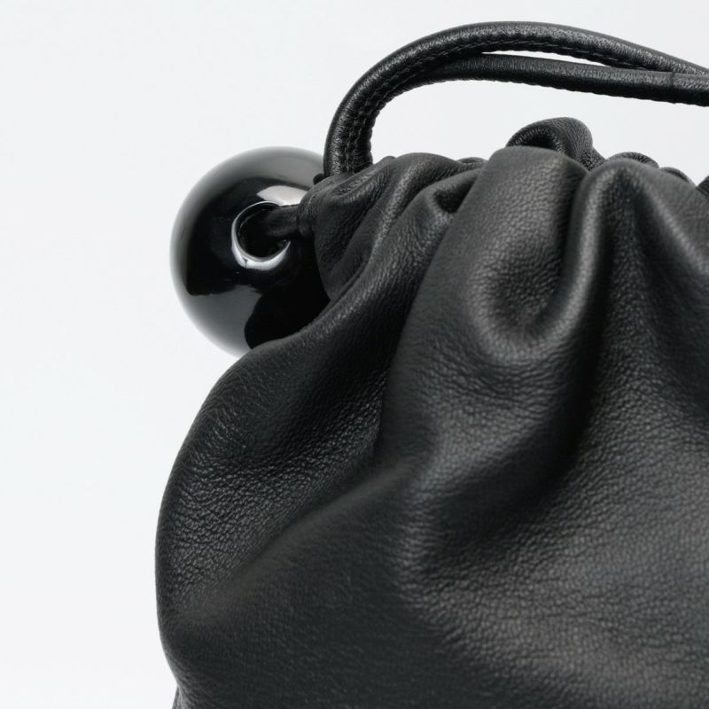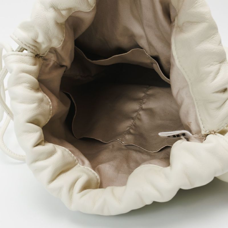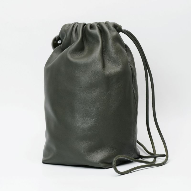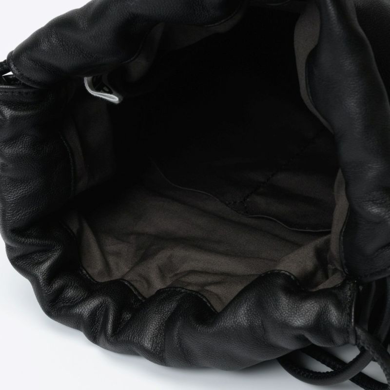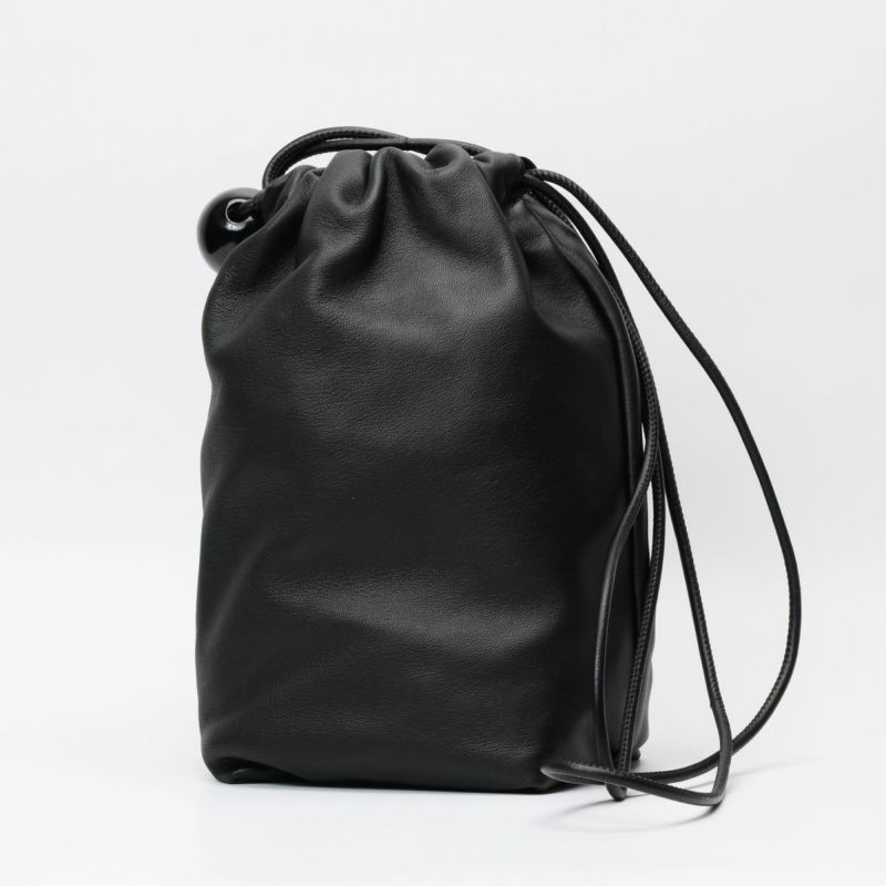 ソフトな手触りの羊革をシンプルにまとめた、ボールチャーム付きレザーラフサック。最長ショルダーでショルダーバッグにもなります。 ショルダーを結わいて、肩掛けでお持ちいただくとボールチャームがポイントの遊び心のあるソフトサックになります。