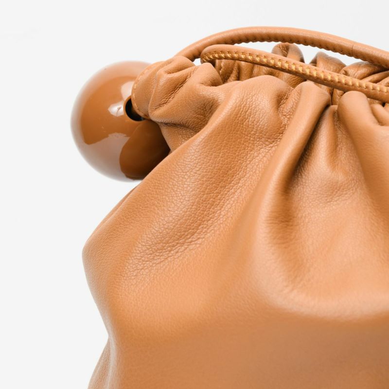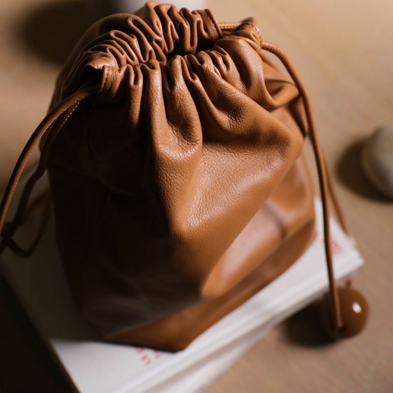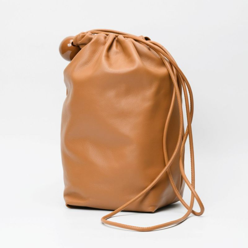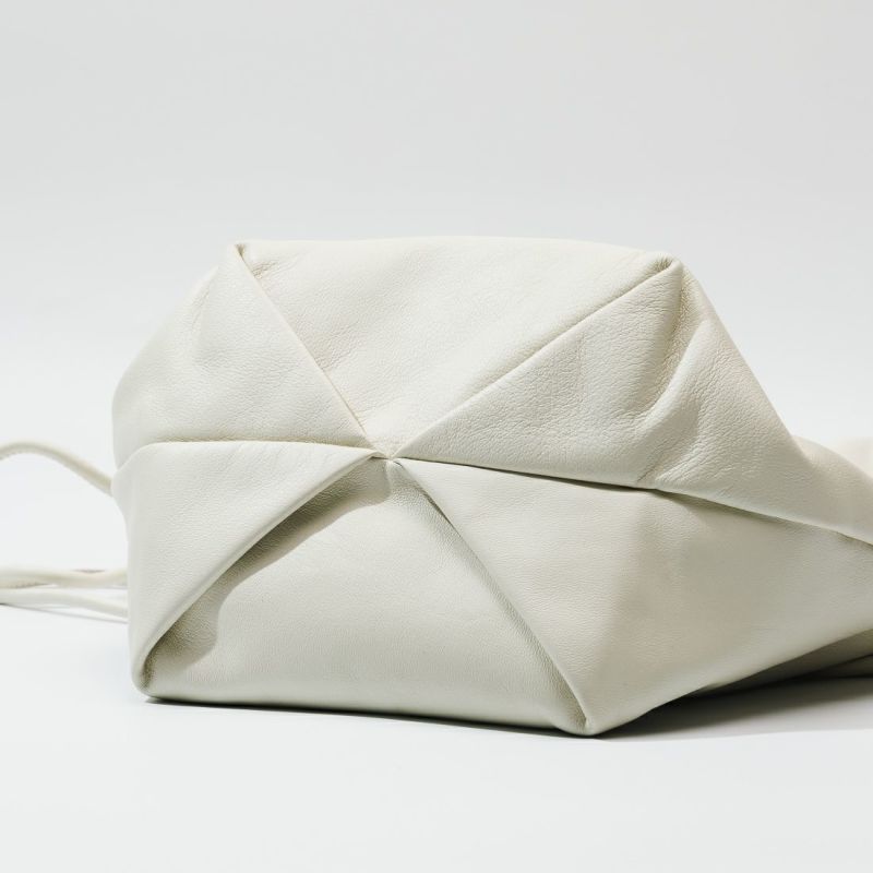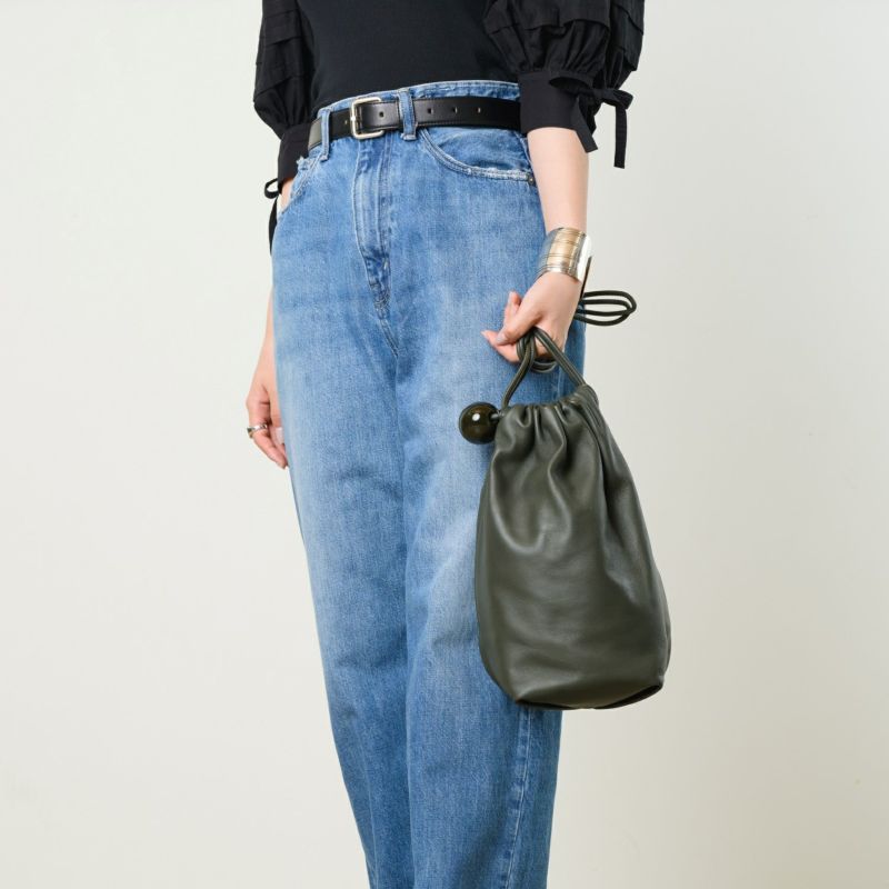 ソフトな手触りの羊革をシンプルにまとめた、ボールチャーム付きレザーラフサック。最長ショルダーでショルダーバッグにもなります。 ショルダーを結わいて、肩掛けでお持ちいただくとボールチャームがポイントの遊び心のあるソフトサックになります。