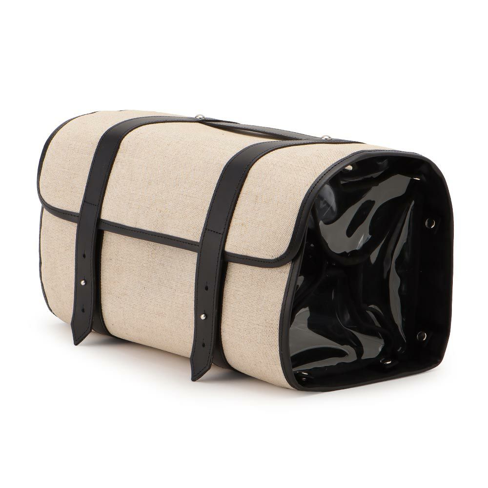 こちらの製品には無染色のリネンと無染色のコットンで織り上げたキャンバスの生地を使っています。