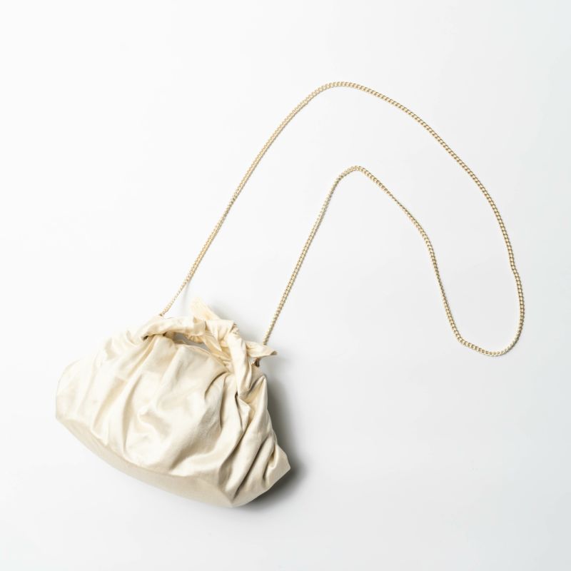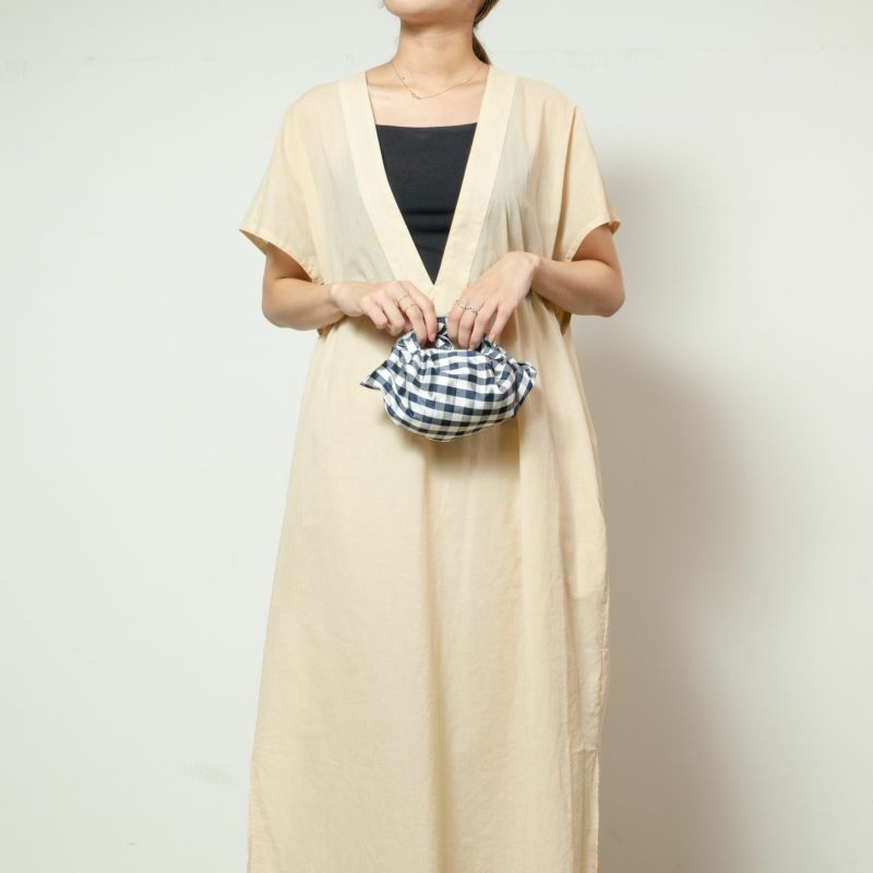 インドの伝統的な織物であるシルクシャンタンの生地を使っています。シャンタンはタテ糸に節のないフィラメントシルク、ヨコ糸には太さの不均一で節の入ったスラブシルクの糸を使っています。独特の鈍い光沢感とタテヨコで色を変えたシャンブレーになっており色の立体感が魅力です。