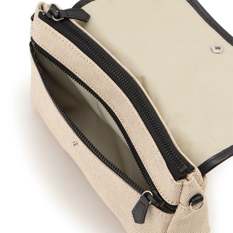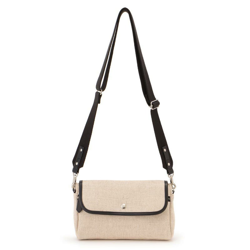 :表地:綿50% 麻50% 裏地:ポリエステル100% ストラップ: アクリル100% 革部分:牛革