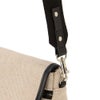 取り外し可能なストラップはギターストラップから着想を得ており、あえて太めのベルトが重さを分散し布製で編み目がバイアスになっているので 身体の丸みに沿って当たりが柔らかいです。