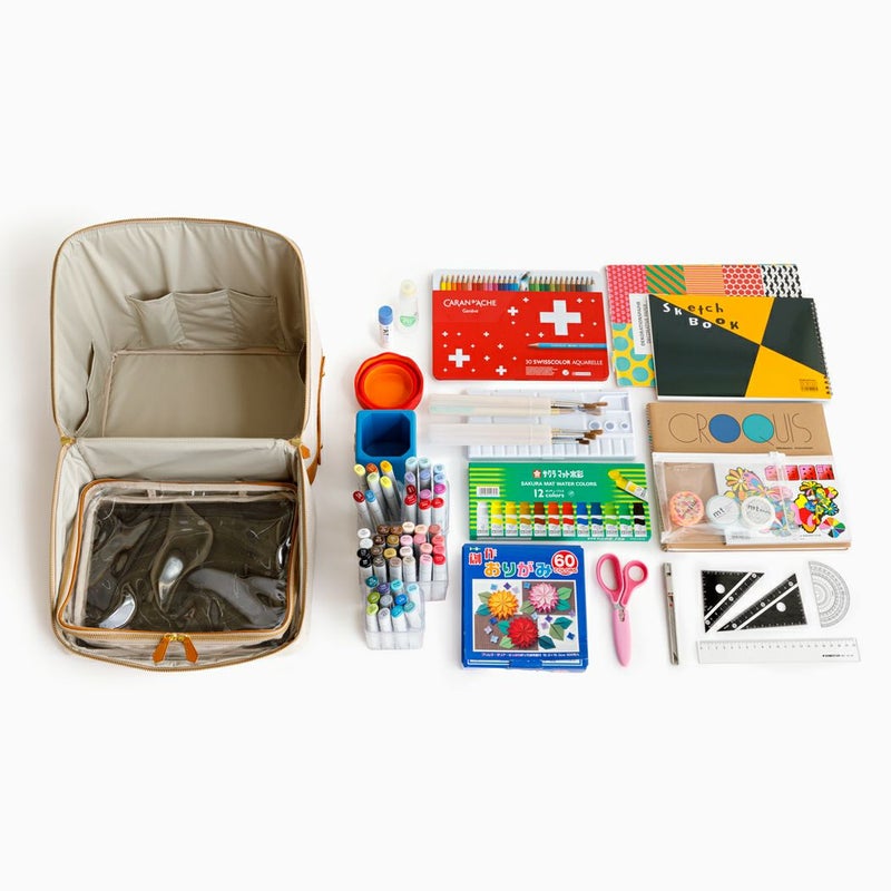 「斜めスライドのファスナーで開けて蓋側手前にくるように置きます。