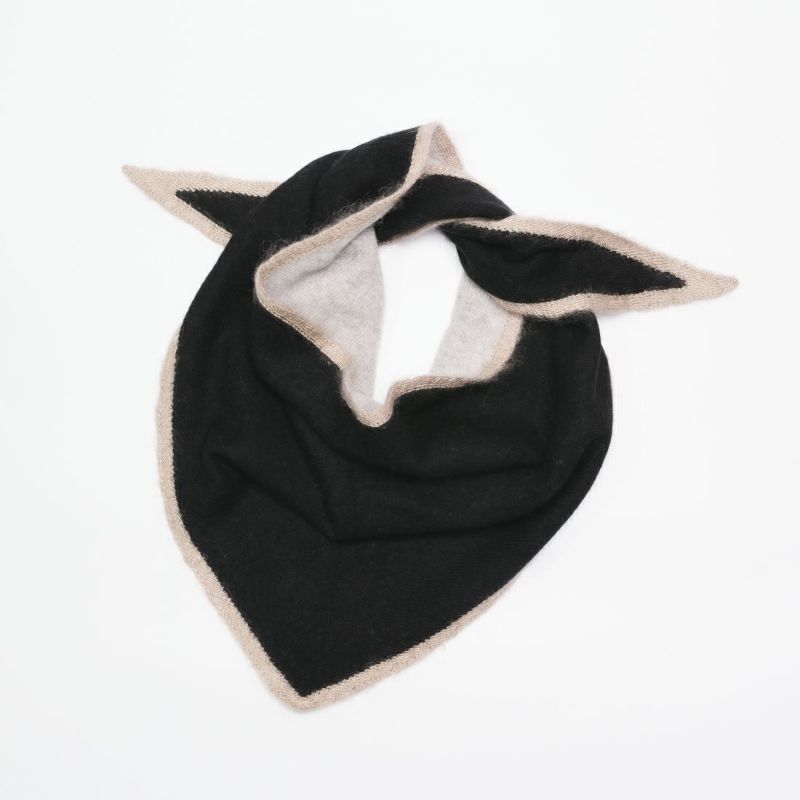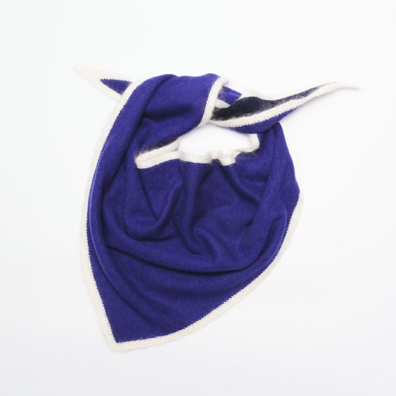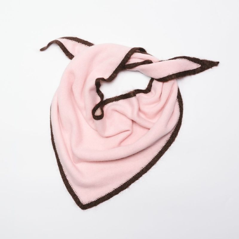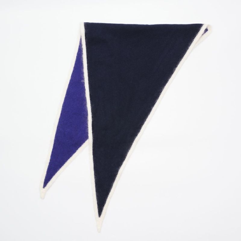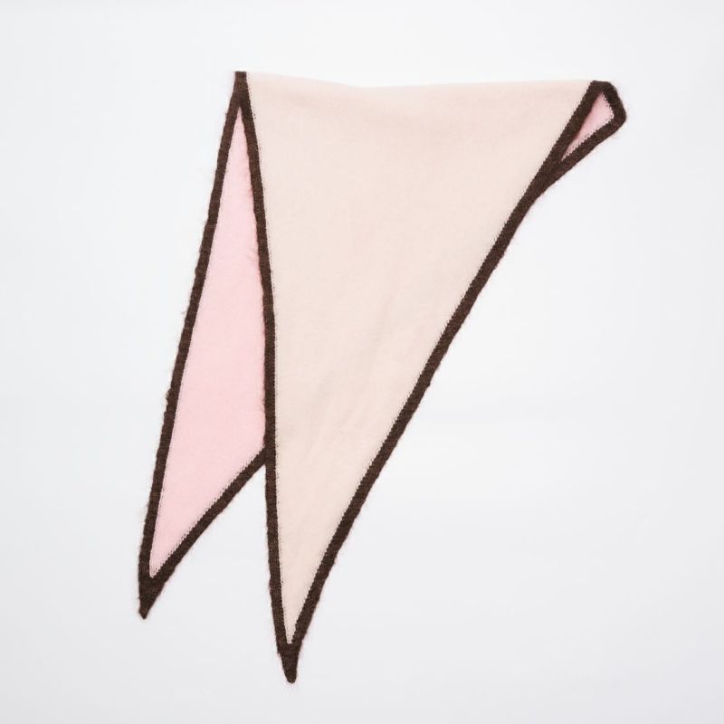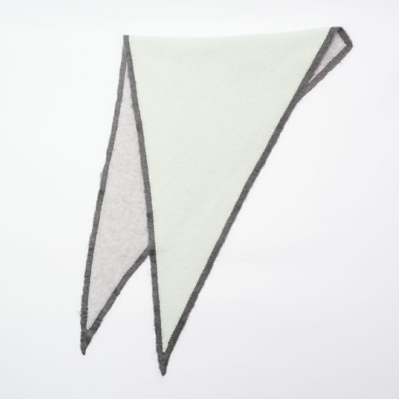 アソースメレでは定番で採用している日本最古のカシミヤ原料メーカーの糸です。袋状の製品にしたことでストールの程よい厚みと、先端部分の美しい角が実現出来ました。25FWより、1cmヘムのあるデザインに変更しました。ヘム部分には光沢感が美しいモヘヤシルク素材を使っています。巻いたとき、絶妙な3色の色味と素材の質感の違いがが組み合わされ、着こなしにアクセントを与えてくれる製品です。