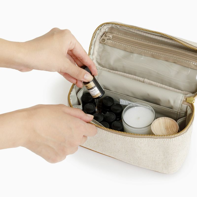 アロマオイル&ディフューザーにヘア小物など、細々とした“お気に入り”をひとつにまとめてどこでも一緒に。