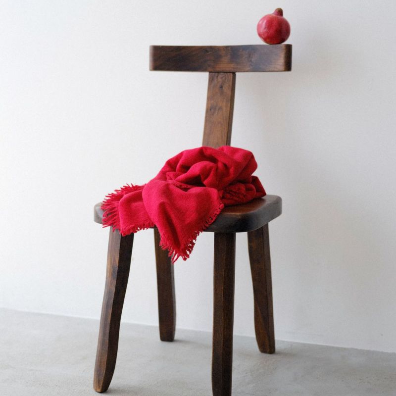 織り上げる段階では、糸の中心に水溶性ビニロンの糸を入れ、最終工程でこの糸を製品洗いで解かします。糸の中心が空洞になり空気を沢山はらんだ柔らかでスポンディッシュな質感が生まれます。薄手ながらボリュームの出る不思議なストールです。25FWの新色としてPostBoxが登場しました。