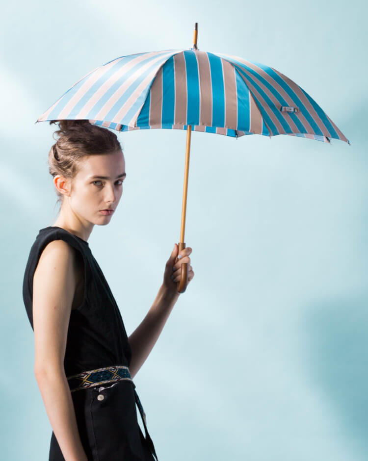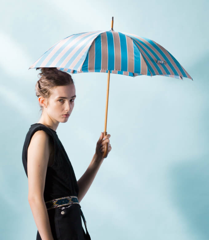 プラデルはフランス・オーヴェルニュ地方の街の名前。美しい街並みとして知られるプラデルの、柔らかくも洗練された色づかいにインスピレーションを受けた、美しいテキスタイルの晴雨兼用パラソルです。