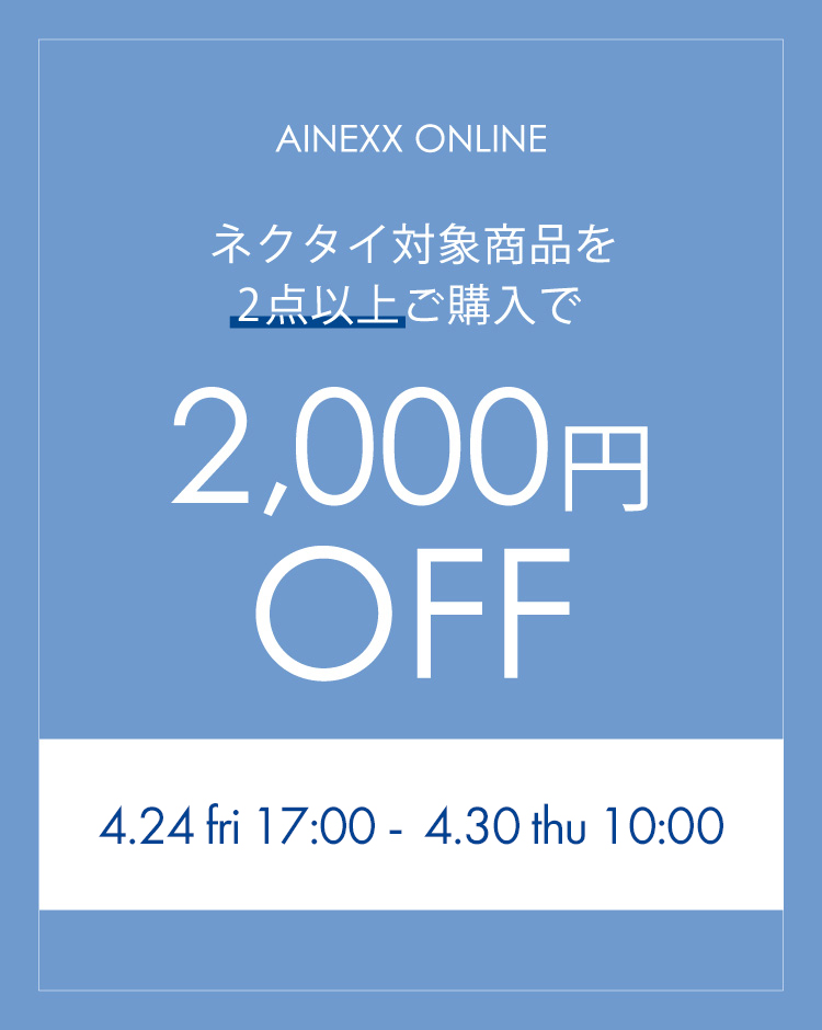 AINEXX ONLINEにて販売中のネクタイ(セール・アウトレット、一部商品を除く)を2点以上のご購入で、