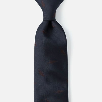 さり気ないリーフ柄が、洒落ているネクタイだと思います。ワインの色味は落ち着いたカラーリングで、とても大人っぽい印象のネクタイです。秋冬シーズンのVゾーンを華やかにしてくれる、そんなネクタイだと思います。