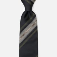 ネイビースーツに文句無しに合うネクタイです。個人的に玄人好みのストライプだと思います。落ち着いた印象を与えたい一日に最適な一本。 -